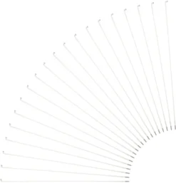 Technische Daten:Einsatzbereich:Road, Cross Country, All Mountain, Enduro, DownhillTyp:RundspeicheKopf:J-Bend (gebogen)Durchmesser:2,0 – 1,8 – 2,0 mmGewinde:2,0 mm / FG 2,3Länge:250 mm – 300 mm (in 2-mm-Schritten)Material:EdelstahlFeatures:geringe Elastizitätgute StoßabsorptionFestigkeit im Mittelteil gegenüber nicht konifizierten Speichen erhöht (1300 N/mm²)Sapim Cold Forging Technologie (SCFT System)Lieferumfang:20 x Speiche Sapim Race J-Bend20 x Messing-Nippel Sapim Polyax 12 mm, silbern