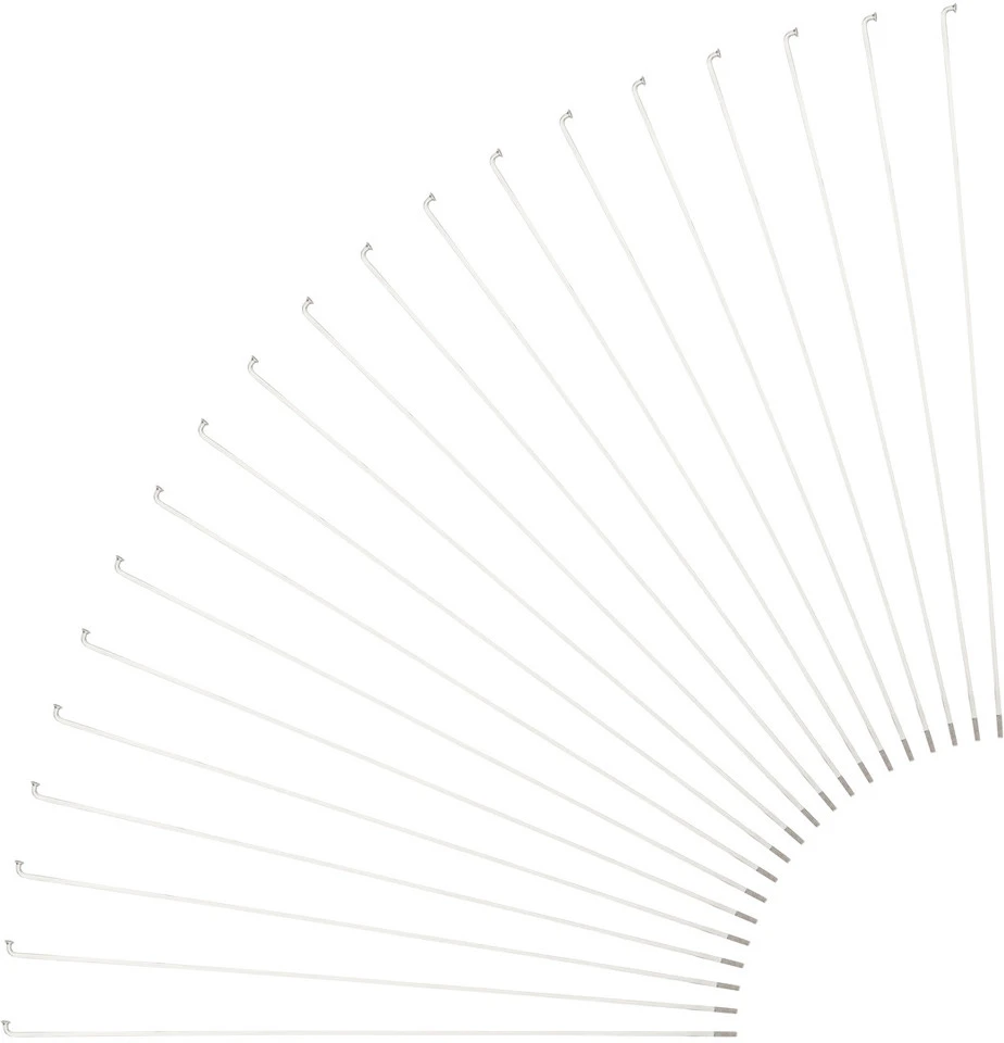 Die Race Speiche – hier in der Version mit gebogenem Kopf und im 20er Pack – ist die beliebteste konifizierte Speiche von Sapim. Zugspannung aufzubauen ist leicht. Weniger Torsion und weniger Elastizität sind für die Race charakteristisch. Sie zeichnet sich außerdem durch ihre bessere Stoßabsorption aus im Vergleich zu nicht konifizierten Speichen, dank ihres dünnen Mittelteils.